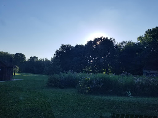 This is an okay park. Just don't expect much. It is small, mostly the space is taken up by a soccer field and three parking lots. There is a very short trail through the swampy woods. The smells back there are not exactly nice. There is a supposed fishing lake, I'm not sure anyone would want to fish in that mud hole. I did enjoy the area around the historic log cabin, built in 1818! The gardens around the cabin were nice and well kept, and the nearby wild flower area was also nice. There is a pavilion and a small playground area as well. I doubt I'll be back, there are many far nicer parks...