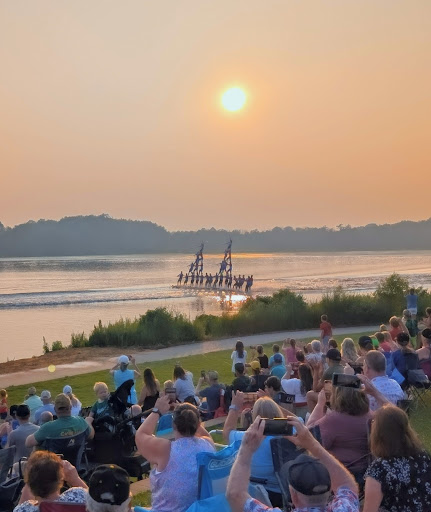 Went to a free ski show and it was fantastic. Pre-show started at 5:30,with the main performance starting at 6:00. We got there about 5:00, and it was packed. Bring chairs is a must. Bleachers filled in fast and sitting on the ground is difficult to see past all the chairs in front of you. There's a pavilion where vendors serve soda, water, dilly bars, popcorn, nachos, burgers and brats. 3% surcharge if you use plastic instead of cash. Great sound system and small public beach area. Incredible skiers, from 4 years old to 50. Most of them compete nationwide. They are all fearless but when you see a 6 and 12 year old performing at a professional level it's amazing. Great family fun and entertainment. Wednesday only, 1 hour show (6 to 7). Can be rained out. 2 shows...