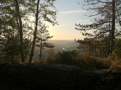 Heading towards Shelburne Falls you’ll get a quick glimpse of a huge hill from some spots of Route 2, and at the top of this hill is High Ledges. It’s up, up, up from the highway and there’s a small parking lot when you reach High Ledges, in foliage season and most summer evenings it can be hard to find parking here- it’s one of the best spots to watch the sunset around. From the parking area, it’s an uphill walk to the ledges- it’s always longer than I remember it, but give yourself enough time to climb up if you’re trying to catch the sunset. You can see straight across the state all the way out to Mount Greylock in the distance. You’ll know you’re in the right spot when you find the abandoned chimney. There are a number of hiking trails here- and a new branch that will bring you out to a fire tower overlooking Shelburne Falls was added (or a least...
