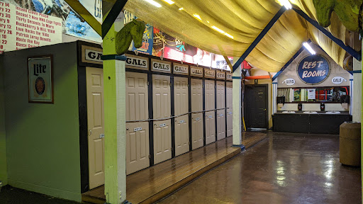 First thing I noticed when I got there was the bathrooms outside. Old school, tacky, but they worked. Next I walked up the ramp to the blue doors (you can enter in about 5 different colored entrances) and what do I see on the door? A sign that reads "No one under 18 shall enter unless with parent". Interesting. Then as I walk in, the first booth I see is for XXX movies. WHAT?!?! I dismissed this and start walking (with my wife and 1 year old daughter in a stroller) to the various booths and store set-ups that exist. The booths looked like crap, and the pathways in between all of them looked like crap as well. There were plenty of empty spaces, then some booths just had some people's possessions from a storage shed taking up the space. There was not a good selection of products. There was a bar at one end, and plenty of junk and porno dvds you could buy, but not much else. There were some knockoff shirts and apparel, and a used video game store, but that was it.