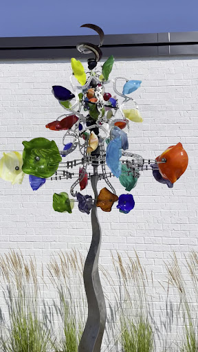 There’s a beautiful side room with a Chihuly glass ceiling that took my breath away. The way the light reflected on the walls and floor was awe-inspiring. The patio is also not to be missed. There were some incredible pieces, including a complex wind-powered glass mobile. It was my favorite piece in the whole place. Just stunning.