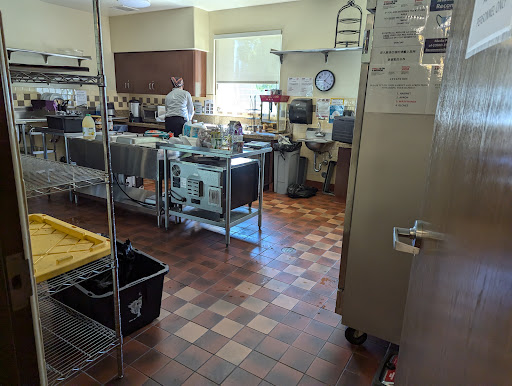 A Meeting Hall, reached by a wide sidewalk, is located approximately 100 ft from the street. The medium-sized room's decor is utilitarian, but comfortable. The air conditioning is effective. There is no elevated stage or sound system provided. An attached commercial style kitchen is included. Bathrooms are just inside the front entrance. The facility may be scheduled for private and public functions.