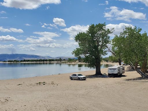 Lahontan offers a closer alternative for boaters and campers. It's a desert-terrain campsite, so don't expect pine trees and bear lockers. Think sand and sagebrush. It's about 45-50 min from Reno and the water is considerably warmer than the snow melt of the Alpine lake. The open campsites are great: find a spot on the beach and it's yours. There are even a few spots in the lake that are deep enough at the shoreline to allow you to pull your boat right up to your campsite. Vault toilets are located around the perimeter of the lake and indicate beach numbers and there are showers on the Northern beaches (odd numbers).
