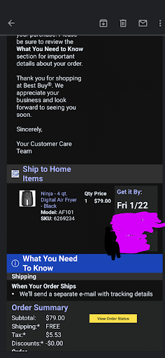Read moreCustomer service poor. For the 2nd year in a row my husband and I went to Best buy for a sale on a TV. The ad stated that the Roku 50 in TV was on sale for $179. The sale was to last for 3 days--Thanksgiving day, when they opened at 6pm, Black Friday and Saturday. We went into Best buy and asked if they still had any available? We were told that no, they only had that deal as a door buster for the 6pm opening on Thanksgiving. The printed flyer said Thanksgiving thru Saturday, their online website stated the same. We also saw the ticket in the slot where the TV was showcased on the wall, it said the same. We pulled the ticket. We showed the next sales associate as my husband over heard two sales people say they had several sales items in the back. Maybe they had one of these TVs as well. When he asked, the sales associate was very rude, laughed at us and said, can't you read? It was only for yesterday. We asked one of the Geek squad people as we figured these other two did not know what they were talking about based on their attitude. He the third one said yes, that sale is valid for three days. We were to go to customer service and see if there was any to order. My husband gave her his phone number. Well because his number was under someone else name, she began snapping at my husband. I think you better try another number, one that is yours! We both told her that was his phone number. The person who had the same number had done a transaction back in 2015 she told us and my husband name was not the one associated with this number she snapped again! I guess no one can be assigned a phone number someone else has had before? I gave her mine and she used it only to tell us they were sold out. She then tells us it was only for the day before. We pointed it out on the ticket to her the dates it stated. She said that was not correct. Geek squad said it was correct and the ads said it was correct, perhaps these other workers misses the memo? Long story short, we were finally able to get a TV at a good deal, not the first but still at a good deal. This is the second year we have been treated in a rude manner before we finally find someone who is nice and knows what they are doing. It's because of the last two sales people that helped and were nice why I gave it a 3 stars. Not so sure about this store. I guess it's...