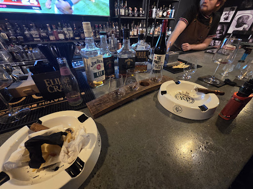 A fine establishment catering to the cigar aficionado and his friends. The atmosphere is relaxing with a bar area, a living room set up with leather easy chairs, sofas and love seats. There's also a really nice patio in back. The smoke elimination system works well; you're going to smell cigar smoke, of course, but your eyes won't burn and you can breathe. The crowd is mostly locals, making it a genuine neighborhood bar. I've yet to run into anyone here whose been rude or had too much to drink. All are friendly and able to carry on an intelligent conversation. No loud and rowdy people here. The bartenders have all been delightfully friendly, professional, and educated in their craft. The selection of premium whiskeys will not disappoint and there are a lot of choices in their walk in humidor. While not a cheap place, the pricing is in line with the high quality of atmosphere and beverages. If you like cigar bars, don't pass...