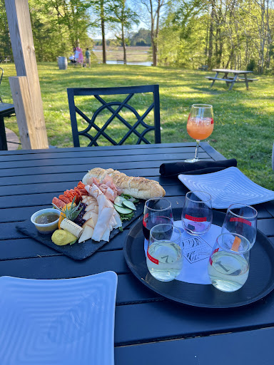 Read moreAwesome winery! They have dining available indoors and out! You are able to make reservations for larger parties if needed. We enjoyed two flights of wine and definitely had our favorites, but all of the wine was good. Enjoyed the outdoor patio with good music playing at an appropriate level where you could easily maintain conversation. They had a couple sets of corn hole boards and a nice fire pit area. We ordered the hummus and the prosciutto flatbread with both having a beautiful presentation, fresh ingredients, and fabulous taste! There is a waterfront view and small section of pier you can walk out on for a better view of creek and Smithfield station out in the distance. Huge grass area for picnics and dogs to play! Very dog friendly! You can see the grape vines and beautiful grapes growing as you drive up to the winery, which I...