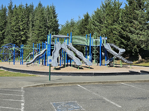 Read moreA nice big playground with a lot of climbing choices, slides, and two fun zip lines. My kids 4.5 years and almost 2.5 years love it here. My 2.5 year old probably wishes there were swings, but she did figure out the zipline after a couple visits. My 4.5 year old loves it all. There are nice, clean bathrooms and some benches and picnic tables and a lot of grass to run around in. There is some shade on the edges, but most of the playground is full sun so equipment can get hot...