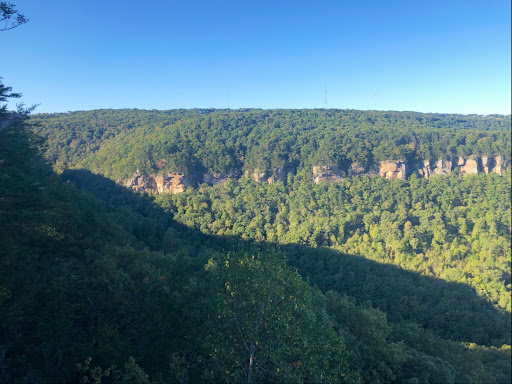 What you will see: There are 2 very main points to the falls. The waterfall itself and across the waterfall to the upper left there is a natural stone lookout that requires you to climb up the small rock embankment from which the main trail ends. It is across the river and up. Looks like a natural staircase made by nature. The views are absolutely amazing. You could probably follow the river up without much problem during non-rainy seasons, however you can definitely tell that the creek turns into a river at some point in the year and will complicate any travel within it. Also I went in July, there was no algae on the rock, another sign that this place gets flooded at times. Unless hiking is one of your major hobbies and you actually have equipment, do not recommend going when raining. Summer season you should be able to hike around without issue. Sadly I could not find a way to the bottom of the fall from the point without climbing gear. Maybe I will come in winter when the trees are sleeping and I can see the ground. The falls is by my estimation 1000 feet more or less. You will have to go to the lookout point or off to the left and up an embankment to be able to see where the water actually falls to. It is worth the sight if you have never seen an actual non-commercialized waterfall.