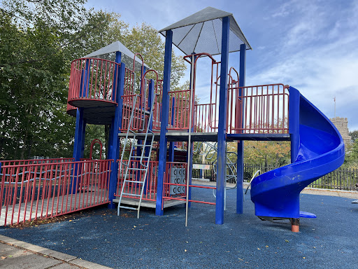 This is a pretty nice playground with two levels. There are a couple of swings on the lower level that look towards Prospect Hill tower. The top level has climbing structures and one of those sit and spin things. In the warmer months there is a water sprinkler to play in as well. Next to the park is basketball courts, and there are picnic tables for relaxing and having a...