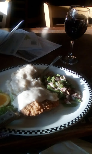 I had the best dinner at Black Bear Restaurant! Food was so fresh, and hot. It was cooked perfectly and the service was excellent. Clean restaurant. Love this place. Had a house salad, served with ample blue cheese dressing, had a glass of Merlot, smooth and velvety, and chicken fried steak with mashed potatoes and green beans (with bacon, tasty but didn't really want bacon so I gave to my dog who loved it!) Had the chocolate avalanche, was so big, probably the first time in my life I couldn't finish even half of it! It was huge and very rich. Hot brownie with panache, chocolate syrup, a LA mode. I'm still stuffed and its been a while since I ate. I usually feel cravings after eating but not tonight! I am full and ready...