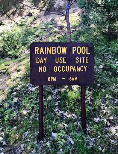 Rainbow Pool and it’s day use area are approximately 10 miles before the 120 entrance into Yosemite. The pool, waterfall and general use are amazing, especially because it’s free. It does have some major downsides. During the summer when people want to go swimming and can’t go to Yosemite, it seems like they ALL end up here. There is parking for maybe 20 cars, but people tend to park everywhere.