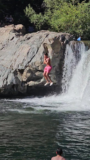 Β Β Β Read moreThis place is awesome! Took the kids (older kids) for the day on a little adventure. Had a blast. The area isnt too big but definitely worth the trip. We hung out on the rocks by the water for a bit and had a little bbq by the car, collected some pretty cool rocks and went home. The water was kinda cold.... Snow water lol ( very refreshing) is was a quiet little waterfall and then down stream a bigger waterfall where you can jump off the rocks into the water. Its pretty deep. Maybe 20 feet or so... The only BAD things: 1- the bathroom is disgusting! HELLA FOUL!! There is no nice way to say it... There is one tiny outhouse style bathroom with pretty much a hole in the ground like a port a potty but not... No toilet... Smelled awful. Definitely not maintained. And there was a gang of bugs in there. Flies, spiders, and whatever other type of bug u can think of... If you plan on wearing a bathing suit. Change into it before you get there! Avoid the outhouse at all cost lol. 2- there is poison oak everywhere. So be careful. Dont touch any plants or go wondering off the dirt trails. 3- the currant is kinda strong, and there isnt really much of a sand or beach area for the kids to swim or play in. Only big rocks to sit on. (They do get really slippery tho) the shallow part of the water is on the other side of the bridge but the currant is fast so not for little ones either. But other than those things its a surprisingly awesome spot to stop by and enjoy the water for a little while. Its like a diamond in the middle of nowhere lol. If you do go here please remember to CLEAN UP AFTER YOURSELF! DONT BE A JERK AND LEAVE TRASH BEHIND IT ONLY RUINS A GORGEOUS LITTLE CUTTY...