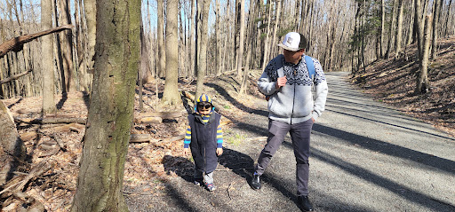This is another hiking trail dedicated to giving an old rail line another life (although there is still an active set of tracks nearby). Very nice, wide, easygoing trail. There are a few informational signs, and a baseball field as you continue down the trail. That said, we only walked the first segment of it, then had to turn back due to lack of time. I would like to return to see the rest. Parking can be a problem, as others have stated. We started the walk near the end toward the burgers and bites chain...none of the small businesses permit parking. Don't be towed! We moved over to a close by residential street, plenty of room there (across the bridge and around the corner). But if you do this, be respectful of the people who live here- don't park in their grass, etc. I am not from the area, but perhaps there is parking near the ball field? We didn't get to check that out- or the availability of any restrooms. There is a somewhat rocky offshoot trail that leads to the rail trail from the field. I'd like to finish the trail, and then tuck in for lunch at one of the local spots......