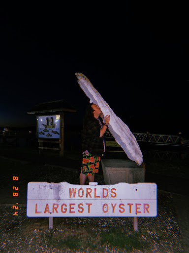 I arrived at 9:11pm, and man was I disappointed; what was set to be my greatest enjoyment, had quickly turned into my very own personal 9/11 😔 I pulled up to a dark lot, not a lot building in sight, and what do I see, next to the sea? A gigantic oyster half shell! NO OYSTER INSIDE TO BE FOUND?! I crumbled to the ground, filled with devastation, cursing any and every god I could think of for playing such a harsh trick on me. After a few moments, I managed to pull myself up by my bootstraps, and thought, hey, I’m a pretty optimistic fella, why not look at the bright side? So I walked up to the big ol shell, and thought to myself “if I can’t have the meat, at least I can lick the shell clean, and treat myself to a nice salty treat!”