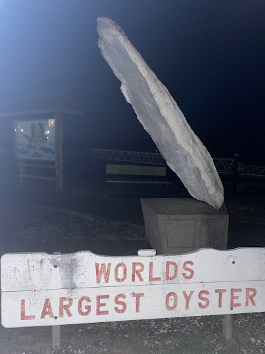 Read moreMy kids and I were enjoying a lovely drive down the coast when sometime between 9:10 and 9:12 PM we stopped by this alluring mollusca monument and simply had to stop and take a few photographs. We were having a smashing time when suddenly we heard a mumbling specter approaching us from the darkness of the 101. We could not make out his words but in his bloodshot eyes we could see a ravenous craving for seafood. He did not engage with us when he approached the monument, instead embracing the shellfish with awestruck adoration and insatiable desire. This joy quickly turned a most unfortunate rage when the slobbering man realized this oyster was not in fact real, and rather built out of a thick concrete. He moaned a howl of grief, and in tears resorted to licking the husk of the shell clean. This cursed image is all we could capture of the incident, and I fear this beast may still be at large, forever yearning for the sweet brine of oysters.