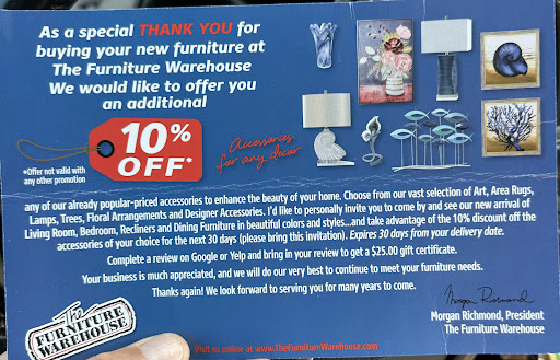 Read moreHeads up!!! Sales are nice but they provide HORRIBLE customer service if heaven forbid something goes wrong with any of the furniture you bought. Sales will tell you anything to make the sale and commission. And Meg, the obnoxious old biddy in "customer service" is absolutely a horrible human being. My husband and I have dealt with her twice after purchasing 2 nice leather sofas that required follow up. One because the sofabed frame was defective and bent on the left side and lower at the foot side, and again because the other sofa is stained and needed cleaning which we paid for in our service contract. She claimed although we paid for the warranty on both couches, the sofabed frames are all made like that and with regard to the stain, "the warranty only covers things like coffee stains and soda stains and I don't know what kind of stain you have on the couch but it's probably not covered". All without having seen either couch. She acts as if its coming out of her pocket rather than a covered benefit we already paid for.
