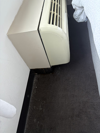 The room itself was a disaster. It was humid, smelled moldy, and the carpet was both torn and stained. The shower was so filthy that my wife and I didn’t even use it, opting instead to clean ourselves with baby wipes before checking out. The bathroom sink was cracked, the ceiling was old and falling apart, and to top it off, the provided amenities (shampoo, etc.) were half-empty and appeared to have been used.
