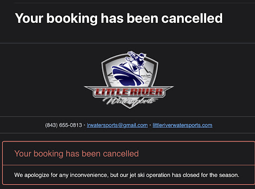 Read moreMe and my 8 year old son took out a jet ski for a one hour ocean tour and had a blast. The staff was very happy and friendly and seemed to legitimately enjoy what they were doing. We did the tour at 8am and ended up being the only riders with Brett. We got to run wide open through the waterways all the way to the ocean. He gave us free reign of the ocean but after about 10 minutes the swells became too much and we spent more time jumping and splashing in the swells instead of going fast so Brett took us back into the creeks and intracoastal and we got to run wide open again. This time my son got to drive. We went all the way up between Sunset and Ocean Isle before turning around. There was little boat traffic which also allowed my son to drive. I highly recommend these guys the prices are way less than anything in Myrtle or N Myrtle and there is more room to ride. I recommend the 8am time spot. When you are done go next door to Crab Catchers for...