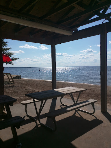 However when we took to the water with the kids, our experience turned sour. Water was warm, but there was alot of baby clams floating in the water, along with alot of bugs. Yes I know it is lake water and that is to be expected. However, if you are charging people to come in, it should go to the maintenance and some type of filtering. As we walked out towards the volleyball net, we noticed sharp and bumpy large pieces of what felt like concrete or something. It was very uncomfortable to walk on. Imagine trying to play volleyball ball with that under your bare feet. We tried to walk over towards the left to see if maybe it was just under the volleyball area. It wasn't. Though it was more dirt you could still feel the sharp edges of whatever that was on the lake floor. So if you are ok with the excessive floating bugs and clams, I would recommend wearing water shoes in the water.