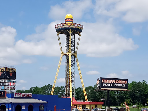 I’ve been going to SOTB since I was a child. I still take my children once a year to get fireworks at there fireworks shop. I had not actually done the Sombrero tower until very recently with my kids. Many times I had tried in the past it was closed or we didn’t have time. It’s a very old structure and does feel mildly top heavy and nerve racking, as you can feel it moving with a good bit of wind or a lot of people up top. It is nice that the elevator is windowed and you can watch yourself go up. Although once at the top, the views aren’t all that spectacular, maybe if they dazzled their roofs up with the Pedro style or had another large structure around it would make it more of a cool spot. I mean they’ve got billboards for miles up and down the highway, but zero marketing on the roofs where they have a giant tower to see the whole park. What up with that?! Additionally there is no designated “photo spot” or “selfie area” up on the roof against the center of the sombrero. All in all I was a little unimpressed with the whole experience. But we got some...