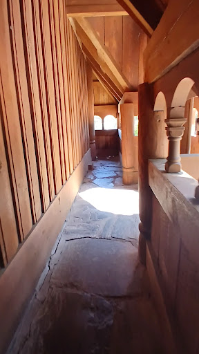 The shop attendant was very friendly and knowledgeable. She described the unique building housing the gift shop called the stabbur. In Norway, animals would be housed below creating heat that would warm the second story living space the sod and grass roof would provide insulation and goats would reside on the roof, keeping it mowed and protecting them from predators. The prayer walk is supposed to have statuary...