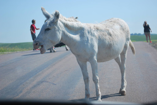 Custer State Park for us was a quick drive through the Park. We didn’t have time to go hiking, boating, paddling, horseback riding, or cycling. The wildlife loop drive is worth the admission. It is a slow drive that takes you through the park to see the rolling plains. We first encountered prairie dog communities. We stopped and watched them communicate and work for about 10 minutes. Next up we enjoyed watching bison cross the road in front of us. Other animals you might see are elk, pronghorn, deer, mountain lion, and turkey. Finally, we were stopped at a traffic jam made by the resident burros. The begging burros have been in the park for generations. They are fun to socialize with and will stop you on the road hoping for carrots, apples, and other food that keep them coming back for more. They are friendly and it is acceptable to feed them and socialize with them. All pictures are from within...