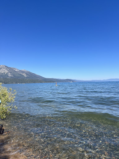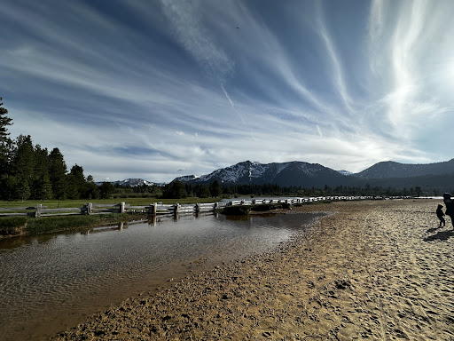 -Kiva Beach is an awesome beach to take your dogs. -It's a strip of sand that divides Lake Tahoe & a smaller body of very calm & shallow water, which is perfect for you & your dogs to swim in. -The beach has enough room for to lounge & relax, but since you have dogs running around, it's best to keep an active-restraint w/ your dogs by voice command. -The scenery is very beautiful, especially in June where there was still snow in the mountains, but the weather was warm.