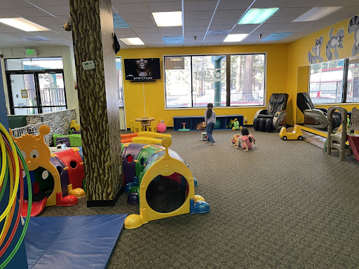 A snack area (Tahoe Bagel Company delivers from next door). A super-clean and super-equpped restroom. Not to mention more blocks, puzzles, dolls, toys, mats, and books than a child can possibly touch in two hours. And for the older siblings who are "too old," there's tic tac toe, 3D Connect Four, and hopscotch for...