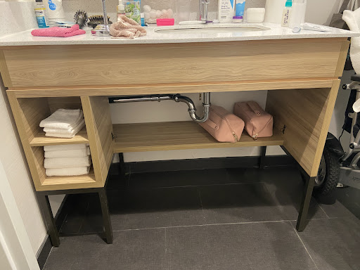 The room really set this place apart. I have been to many hotels in my travels but this place fits my lifestyle and likeness. Beautiful wood style tile on the floor, a sleek shelf that runs the one side of the wall with a HUGE TV and plenty of space for your things. Some of the outlets have USB outlets which is super convenient. The bed was super comfortable and clean! The bedside tray on wheels can be used as your workstation or just for snacks in bed! the bathrooms are updated and sleek as well! They have these amazing soap dispensers that you just squeeze and liquid soap comes out. They don't entertain that dry bar soap nonsense or the small bottle that runs out after your first shower. Mini fridge keeps the beer and water cold. I do wish there was a microwave in the room but I can overlook that. There is one at the kiosk downstairs but one in the room would be great.