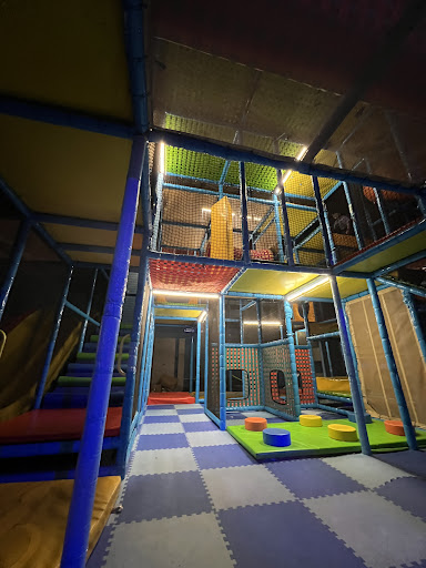 We didn't even bother trying anything like dodgeball because it was just a mess of kids running in and out, even though the signs definitely make it seems as though the intent is to have actual dodgeball games. I get that they probably don't really care how good of an experience people in their mid 20s have, but the website led us to believe there was a place for us and that there may even be parts catered to an older crowd (I guess white claws in the cafeteria count?). We thought there was an adventure/ropes course that was geared more towards adults, but what there really is is a sloppy arrangement of swinging stuff in the middle of the place, with signs telling you which way is in, which way is out, and a whole lot of kindergarteners blissfully unaware of all of that running in and out the wrong way and nobody telling them otherwise.