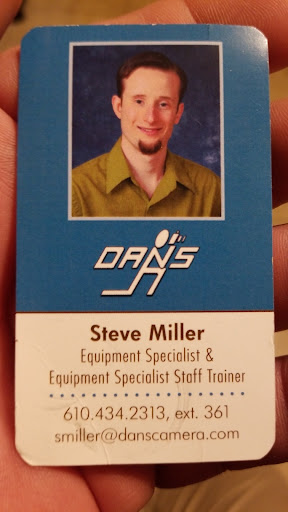 Read moreI can't say enough great things about the staff at Dan's. Every time I go in I am always treated like the most important customer in the world. Today I stopped din to ask about calibrating lens just hoping to get some information and Steve in the Allentown store told me to go grab my camera and lens from the car and he sat and took the time to review the focusing on each of my three lens and showed me sample images he took and explained to me what my lens and camera were and were not doing well and how my set up would benefit from being calibrated. Instead of just taking all my stuff and being eager to charge me for calibration I might not have even needed, Steve took the time to make sure my money would be well spent. Building that kind of trust is important to me in a retail industry where items are typically very expensive.