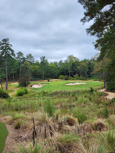 Course is always in fantastic shape except not sure this year I can quite go that far. Tee boxes decent, fairways decent when not wet, greens were like carpet just rolled wonderful and nice quick pace. Cart path only on holes 1,3,4,5 (half from pond and in) 16 & 18. We have played here every year and every time these same holes are soft/wet/balls plugging. Had a ball plug on #3 in the rough, yes the rough! That should tell you how wet it was there! You think they would fix this by now for crying out loud. Now you might say that's because they got rain last week, but they all have ground under repair and sod laid out and marked. That didn't happen overnight also but sister course Pine Needles literally across the street was pristine. No signs of rain, wetness nothing, and we played there a day before Mid Pines! The worst part is it's the same management! If you haven't played Pine Needles you probably will think it is a fantastic track, which it is but nowhere near what it was years ago or what it could be!