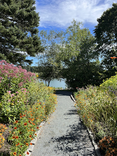 Beyond the butterflies and flowers is a beautiful grassy park area with benches and picnic tabes — it wonderful view of the water. A great place for a picnic or to just sit and relax among the beauty of the flowers and view.