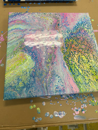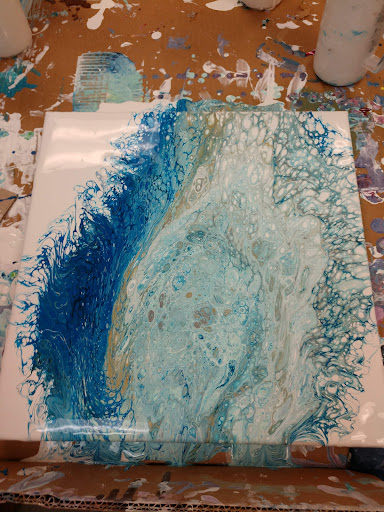 I recently attended an acrylic pour class hosted by Stewart and Loren. While waiting for the class to start I had a chance to explore the quaint gallery. I love how the artist work is shown as well as example pieces from upcoming art classes. There's some really beautiful pieces of artwork. I would say something for everyone. If nothing else the raven haired beauty that whispers to you from the canvas as you walk by...absolutely striking. To the Dreamy Sailboats at Sea. The art class was informal and relaxed. Well thought out, and easy to follow instructions. I am not an artist of any kind and had an absolute blast. I really enjoyed how easy, fun, and relaxed the atmosphere was. I can't wait to try another class. Thanks...