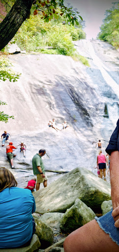 KIDS ARE EVERYWHERE. Climbing on rocks. Sliding in the water. Think you're going to get a nice picture of the falls. FORGET IT. The bottom is just a cluttered mass of kids, parents, dogs, shoes and socks, water bottles. You name it. It's there. Don't expect a quiet place to sit either. Sharp jagged Boulders begging you to make one wrong step. Because when you do it's gonna hurt.