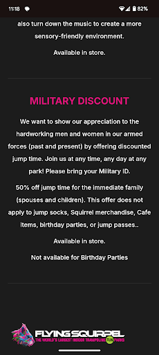 My first time coming here, arrived 40 minutes before they close and couldn't jump. I have memberships to Get Air, Altitude and Defy. Because all three were closed at 8pm, we made a special trip to Flying Squirrel. I drove from Pullman to Spokane, almost 2 hrs. We detoured to Flying Squirrel so my daughter would have 40minutes jumping, instead of 10min jumping. At ANY of those other three places, we could have walked in and jumped. At Flying Squirrel we were told they closed their registers at 8:15pm.