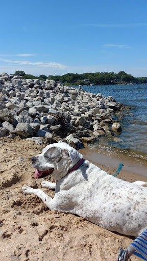 First time going it's a great place not a large beach but it's nicely kept and it'd a beautiful spot. Street parking and it looked like alot of families that live near by walk in to go. It got quite busy by 3 I'd say. Has a bathroom and I heard someone say there is a shower there. Lots of tables and benches to sit on also. Water is pretty shallow out to the buoys so pretty warm so I lad my chair right...