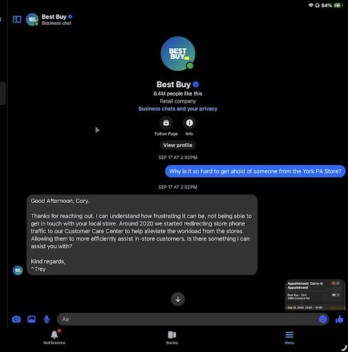 The Best Buy at 2865 Concord Rd, York, PA, 17402 has lost my personal business, company businesses, and the business of every single...