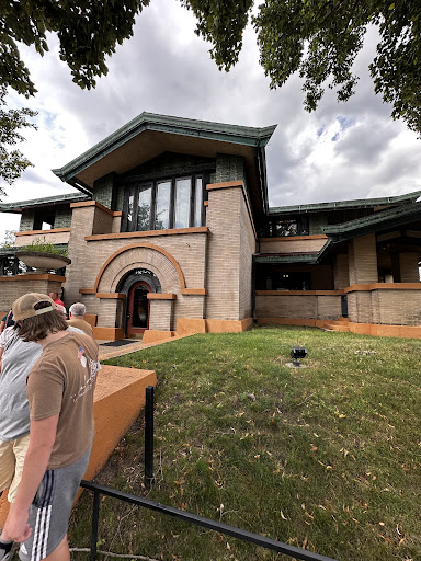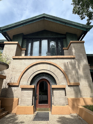 Read moreThis residence, house, structure is a must see for every person enthralled by and informed about the work of designer and architect Frank Loyd Wright. According to our excellent host and guide this is the second largest of his buildings in America. Sumac September / fall glass adorns the windows throughout the three floor structure, a prominent statue greets you,, stairs lead quickly to a room with Wright designed chairs, he designed all the furniture, a fireplace invites you to sit down, a large dining room with a barrel ceiling is surrounded by a sumac original mural painted on the two walls, gotta see it, still in tact, not painted over, 4 floor to ceiling light fixtures, stairs lead to a small gathering area where musicians would sometimes play while you enjoyed dinner, then a hall lleads to an amazing large bedroom, oak trim, cubbies for clothing, wood floors,, bathroom includes a soaking and smaller bath tub, then sharply down stairs to large kitchen, two stoves, a whole wall ice box, then a large enclose front porch you could dance in and a lecture hall/ music hall/poetry reading room for 35 people, a surprise bowling ally in tbe basement, definitely japanese influence and beautiful, #1 place to visit in springfield besides lincoln library and museum and his...