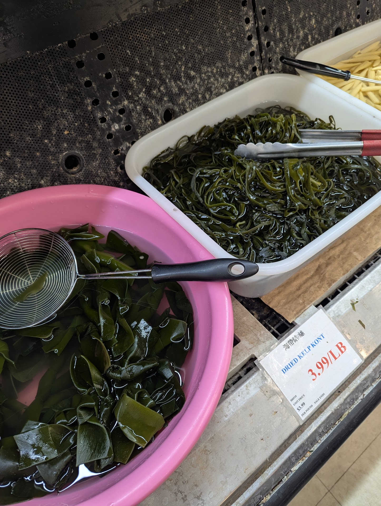Store is very large - did I mention that? Store is not new and feels a bit trafficked but is well stocked and organized. I thought produce was terrific, everything looked very nice and a lot of stuff you probably can't get at other stores. For example - large fresh baboo shoots and seaweed you can scoop out from a bowl of...I'm assuming salty water? I also noted (trigger warning) they had full head of pig - the whole thing with nose, ears etc. this may not be appealing to many people but this just suggests very fresh meat, possibly butchery etc. Large selection of fresh fish, large selection of teas, hot sauce, rice and everything imaginable.