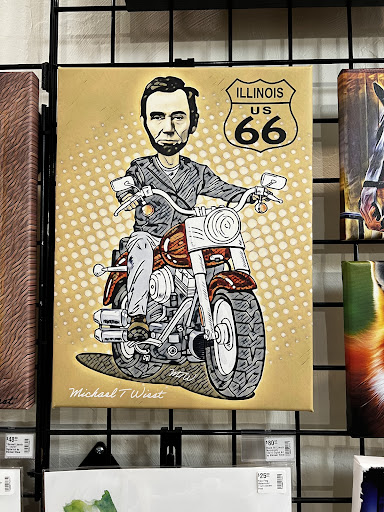 Read moreI recently visited the Lincoln Plaza Galleria for the first time ever. What a treat. The shop has a variety of sizes and pieces of art, many highlighting Springfield's Abraham Lincoln & Route 66. It was a pleasure speaking with the owner and incredible artist Michael Weist. He took time to visit with me, and even showed me several pieces. When I purchased a couple prints he offered to sign them for me. That was a pleasant surprise. I also felt pricing was very reasonable. Be sure to stop in when you're in town. There are smaller souvenir type gifts available here as well as postcards.