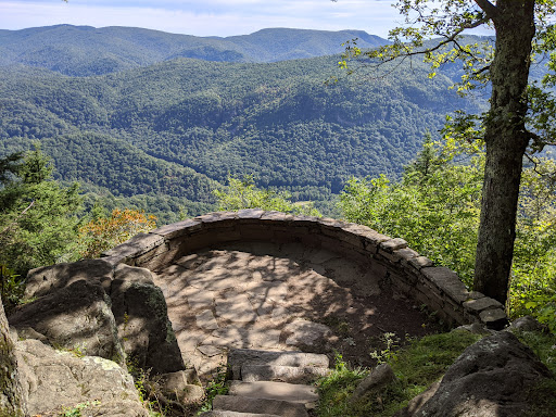 Stop here! Walk! This is the best turn out we have seen between here and Ashville! Do not do like most people who we saw pull in, turn around, and go out! Just because you don't see the view from the large parking lot with picnic tables, it is worth getting out. Don the paved path is a split in the walkway with a sign that says .6 miles. Go left there down about 30 steps and you will be treated to the cutest little stine paved landing and viewing area yet! AND, if you take the .6 mile walk, that is round trip! It is a loop hike which in late Sept had 5 different kinds of beautiful and colorful wildflowers still in bloom. The hike is easy, mostly gravel and dirt with some roots and not uch elevation. Unfortunately, every other car we saw, just turned around. We...