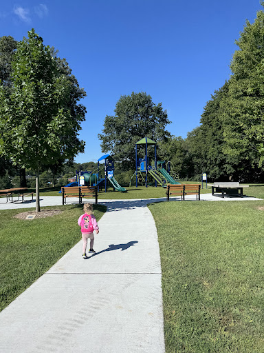 Excellent playground that was just redone in early 2025. Astro turph surface for those of you looking to avoid sand or wood chips. The toddler section has lots of interactive gizmos at ground level plus two slides. The big kids area has two rather big slides and some less conventional climbing paths. The park is rounded out with a merry go round that looks like a Christmas tree, a metal zig zag balance beam, and 4 swings including 2 normal, 1 enabled, and 1 baby. Minus one star for the baby swing being backwards and all the spiders - there were webs everywhere!