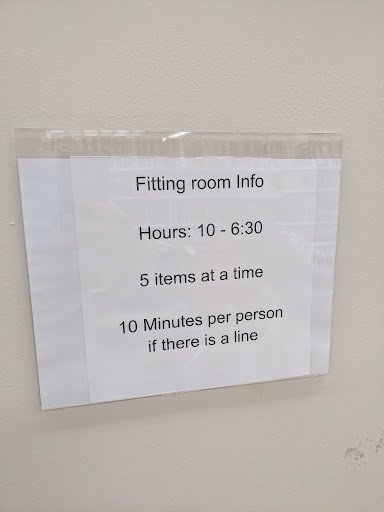 This place is ok. They close the fitting rooms 2 hours before the store closes so don't try to buy clothing there in the afternoon. Dumbest policy ever. Let's have a clothing store but restrict access to the fitting rooms and don't allow returns. What touched individual made this ridiculously dumb policy?