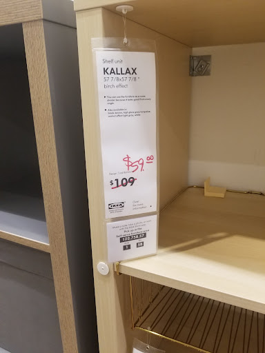 I like this store and the past few times I've been there I had great service. However, today I went in to get 2 of a specific item for my classroom and house (the Kallax 4x4 shelf unit in birchwood.) I saw that they had the exact item I wanted reduced from $109 to $59 and was super excited. I checked to make sure it was in stock before I went down to the box area and the website said they had 6. I went down there and the shelf was empty.