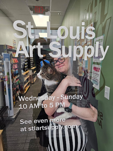I was looking forward to visiting this store as the website shows images of a very well stocked art supply store with a wide variety of items. Boy, was I wrong! First of all, parking stinks. Across the street, No Parking Signs are all up and down the street. There's a dock next to their entrance so you cannot park near there in case trucks are loading/unloading. Just past that are 15 minutes parking signs, so be careful where you park. There's a lot nearby, but it has No Trespassing signs on the fence. So then, it's a little confusing once you arrive. Go all the way up the ramp to enter the first door. You will start to see art materials, but don't walk into the door straight across from the entrance...walk into the common area a little and you will see the store entrance. There are signs to not let the cat out....so, if you are allergic, do not go in that first door. That's where I first encountered the cat. So once you enter the actual shop, you will find a scarce stock of art materials. Nothing seems organized in any kind of way. I had to be directed to each item in my list. Once found, I had to ask for the sharpened and not broken off pencils I was there to buy. Also, there is no sampling of pens or anything. The merchandise on the floor was damaged if even in stock. The bulk of the inventory seemed to mostly be in a warehouse. They check you out through a window like at a Dentist office. There is nobody on the sales floor, which is very, very small. If you came to view something before buying, this is not the store for you. Prices are OK, Blick's are definitely better. The Kuretake Gansai watercolor paints I wanted were much cheaper on Amazon. It's great that they sell single pans, but not such a great attraction to get me to return unless I am already at IKEA which is nearby. I had actually driven past Art Mart to try this place, but ended up going back to get the things that were not in stock at STL Art Supply. I was very disappointed and have no plans to return. This is an online store that has a small retail area with limited and very unorganized stock. The website shows an artist area where you can sit back, relax, and create with your new art materials... I never found that. Very...