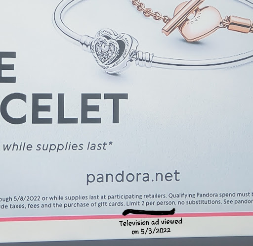 Read moreDrove an hour to purchase safety chain for bracelet as I had previously lost it, found it and did not want to lose it again. As always I'm looking at charms and ask about the free bracelet for mothers day. Salesperson states you have to purchase at least $150. Its not stated on television ad but it is on website (I had to fact check). That then no longer interest me as it was not my intent to spend that much. As I continued looking and selecting charms, my end balance was over $300. I get the bracelet and ask about a 2nd as I've spent double. I'm told by the manager, Mark it is limited to 1 per guest. I ask to see that in writing because it's not on the website. Then he back peddle and say well oh the ad says spend $150 and get a bangle not bangles (emphasis on the 's'. Okay I did that 2x which means 2 bracelets. Then he says per transaction. I ask where is that in writing? Again, the ad says spend $150 and get a bangle. He then states it has to be per transaction. This dude was really trying to insult my intelligence. And he didn't know that I had already spoken with the customer beside me who had also spent $300+ but HE had already okayed 2 bangles for her single transaction. Bottom line, I had to return items totaling $150, repurchase to make it a separate transaction to get the 2nd bracelet. More work for them not me and I got the 2nd bracelet which was fair based on Pandora's ad.