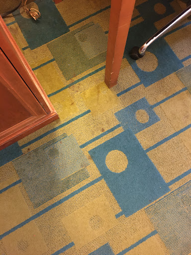 How disappointed am I with this property? Enough to write my review twice. The 1st was on our way home. Google updated my location upon arrival & DELETED MY REVIEW. Here I go again. The redeeming qualities of this hotel are the EXTREMELY friendly, hardworking staff, the great drainage in the parking lot, the teeny bottle of Paul Mitchell Awapuhi shampoo in our room. That’s it. Hurricane Nicholas was rolling in. We arrived 30 min prior to check in, nice Italian lady @ front desk checked us in while fielding countless phone calls RE: the property being under new ownership. ? My online reservation was for a handicap accessible room. The clerk reconfirmed, saying she thought I may have chosen the room by mistake. My disability is not readily noticeable, so this has happened before. I have stability issues that make a handicap accessible room a necessity for me. I confirmed my need for the room. We received #210. Aside from the handrails on the bathtub & the low peephole, this room is hardly handicap accessible. Thankfully I’m not currently in a wheelchair. If I were, I could NOT navigate this room smoothly. Just getting around on foot was a challenge. Add my spouse & service animal, maneuverability was outright dangerous. Our room was gross. The walls, ceiling & carpet were filthy, stained, etc. The carpet was like a scene from Forensic Files. There was black mold on the mattes of the pictures & on either side of the cabinet that housed the microwave & mini fridge. My allergies were through the roof & I didn’t bring my saline rinse or allergy sprays since this was a reputable chain & our stay was 1 night. Painful mistake. This hotel is in dire need of a complete overhaul. There were no easy access electrical outlets on either nightstand. The outlet on my side of the bed (if you want to consider it’s placement that) was about 12”+ deep from my side of the headboard, no where near the nightstand. My lamp was unplugged (probably from previous guests who needed to plug essential items) so I wrestled to reconnect the lamp & then my phone charger. I am not exaggerating when I say it took me almost 5 minutes & the flashlight from my phone to get 2 things plugged in. I was NOT HAPPY & I have the bruises to prove it. The outlet on my husband’s side was accessible, however only 1 electrical outlet was available. What to plug in? His apnea machine or the GPS to get us home? The fridge had a good amount of shelves & cooled adequately, however the freezer had empty wrappers in it & something brown melted/frozen to the bottom. Disgusting. Killed 2 roaches found while lights were on. I don’t want to know what came out in the dark. The bathroom was spacious & had stabilizer bars in the tub, 2 rolls of TP (nice since there’s no daily housekeeping) & a visible tissue holder (thanks for that, since my allergies were severe, I was blowing my nose throughout our stay). The shower/sprayer had one mode, a wide spray radius that blasted everything but the person bathing. Close the curtain tight, twist, turn & tilt to rinse. No floor mat provided, use a bath towel to keep from slipping upon exit. The mattress was acceptable for one night, although 3 pillows on a king size bed was skimpy. I found the housekeeper and recv’d 1 more pillow. The gym was dark, all equipment unplugged. In the morning we went down for breakfast, there was NOTHING. I get that this is a pandemic, but I’ve stayed@lower price La Quinta/Wyndham hotels that at least provided “grab bag breakfast.” This hotel had nothing but hot water (much appreciated, I can only drink tea) & weak coffee. That’s it. I tried to make coffee in our room, but when I put water in the reservoir nasty debris floated to the top. (See pics.) While gathering our belongings to check out, I discovered a power strip attached to the leg of the desk, w/ a total of 2 add’l outlets. The other outlets on the strip were in use/blocked by room items plugged in. There are no USB ports anywhere in the room. This hotel is overpriced by at least $15/night. Regardless of any price, we will NEVER stay at this...