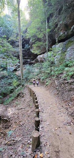 Read moreThis a very good trail with a nice payoff at the end. About 2 1/2 miles in total as an out & back trail. The first 3/4 of the trail from the parking lot is flat and through some nice trees. Colorful during the fall. The last 1/2 mile of the trail has a pretty good elevation change down and then back up. As you get to the gorge basin there are several flights of stairs. Then to get up to the arch you climb up a natural trail (rocks, tree roots, dirt slope) so there is a bit of scrambling to get up to the arch. This may be challenging for little ones and those with mobility challenges. It's not a terribly long climb but you are most likely using your hands for stability. Once at the arch the gorge and arch are quite impressive. A good spot to catch your breath before the hike back. There are ways to connect to other trails, if you are inclined to, so have a good map handy. Took a little over an hour for...