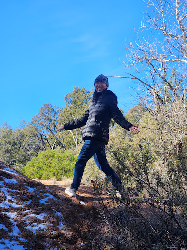 We took one half of the loop (south trail) out, hit cypress trail, hiked the 2.5 miles till it ended, then turned back. Coming back, there’s a sign showing where the north / south boulder trail splits. We took the north route back.